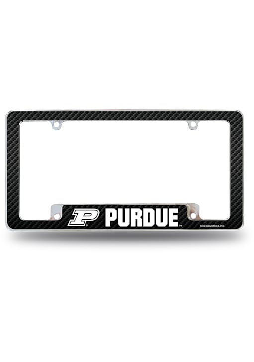 Silver Purdue Boilermakers Carbon Fiber All Over Chrome License Plate Frame