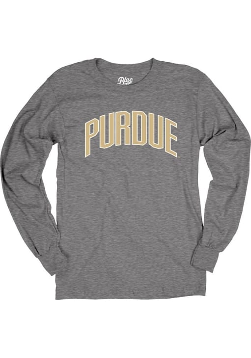 Show your Purdue Boilermakers spirit in this Purdue Charcoal T Shirt! This Purdue Arch Name Long Sleeve T Shirt makes a great layer for cooler nights cheering on the Boilermakers. Featuring a screenprint team graphic on front chest, this Purdue Boilermakers Long Sleeve Tee is an essential addition for every fan. Hail Purdue!