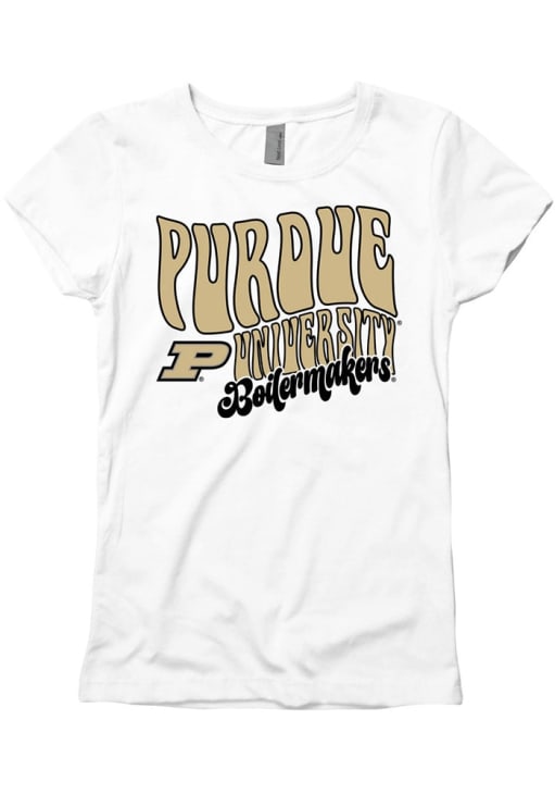 Support your favorite team in this Girls White Purdue Boilermakers Rippled Vibe Short Sleeve T-Shirt! This T-Shirt features a screenprint team graphic, so everyone will know your favorite team is the Purdue! This is the perfect Purdue Boilermakers Girls T-Shirt for wearing to game day or everyday. Hail Purdue!