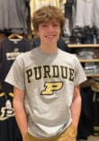 Display your team spirit with this remarkable Purdue Boilermakers Grey Arch Mascot Short Sleeve T Shirt! The Purdue Short Sleeve Tee showcases a screen print Purdue arched over team logo on front chest that truly sets it apart. Stand out from the crowd and proudly declare your allegiance to the Boilermakers with this exceptional Grey Purdue T Shirt. Hail Purdue!
