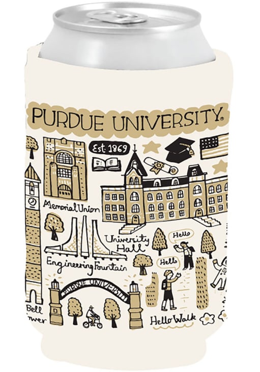 Product Details Product Details Team logo on frontHolds 12oz canMade of high density scuba foamHand wash onlyMakes a great gift Officially Licensed This Purdue Boilermakers Coolie is great for keeping your drink cold and showing your Boilermakers spirit. Cheer on the Boilermakers with this Coolie, which features a hand drawn illustrations of campus landmarks by Julia Gash.
