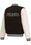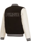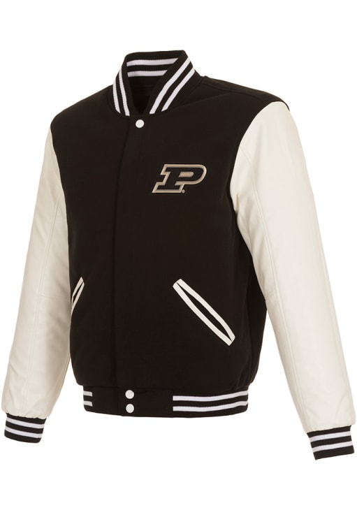 - Soft-to-the-touch polyester fleece body with a faux leather sleeves and nylon shell reverse side