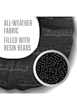 - Bags are made from all-weather durable fabric, filled with resin beads