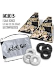 - Includes two game boards, 6 team-colored bags, and a bag for easy carrying.