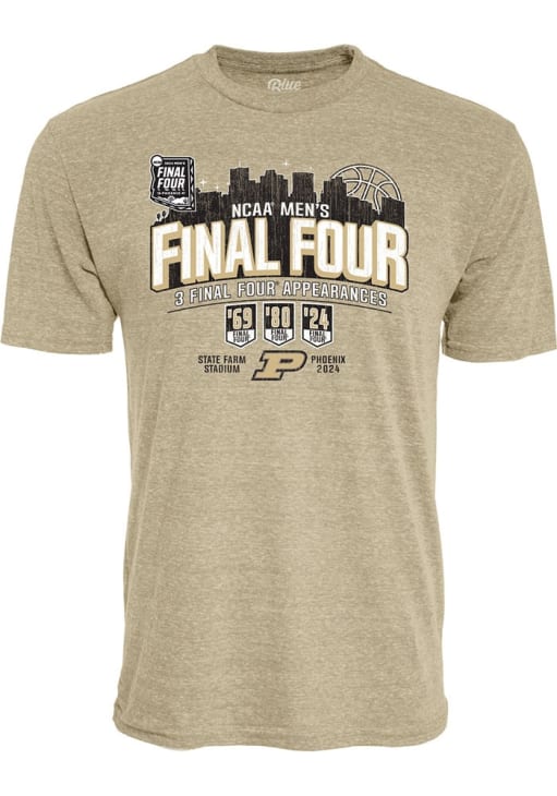 Support your Purdue Boilermakers in this White Short Sleeve Fashion Tee! This 2024 Final Four Banners Fashion T Shirt features a screenprint team logo on front chest. Be ready to yell "Hail Purdue" when you wear this Purdue Short Sleeve Fashion T Shirt in your favorite stadium or on the street.
