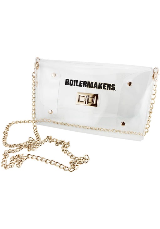 Product Details Product Details Clear PVC BodyGold or Silver Hardware AccentsDetachable Chain Crossbody StrapTurn Lock ClosureDimensions: 8" x 5" x 1.5" Officially Licensed Whether it's gameday or another occasion in the offseason, count on this Purdue Boilermakers Stadium Approved Envelope Clear Tote from Rally House for your on-the-go needs! You'll love this Clear Tote that features a detachable chain.