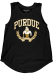 Elevate your tailgating style with this Purdue Boilermakers Womens Tank Top. Stay fashionable and comfortable in the refreshing Black Muscle Sleeveless Shirt. Discover the enticing details of this Purdue Tank Top, showcasing a screen print team name and logo on center chest that's sure to impress.