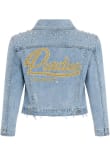 Stay warm and comfortable with this Purdue Boilermakers Womens Blue Script Denim Medium Weight Jacket! Cheer on the Boilermakers in this Purdue Medium Weight Jacket. With a crystal rhinestone embellishments, you won't want to be caught without this Medium Weight Jacket on gameday.