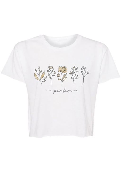 Display your team spirit with this remarkable Purdue Boilermakers White Jade Crop Short Sleeve T-Shirt! The Purdue Short Sleeve Tee showcases a screen print team name and flower design on center chest that truly sets it apart. Stand out from the crowd and proudly declare your allegiance to the Boilermakers with this exceptional White Purdue T-Shirt. Hail Purdue!
