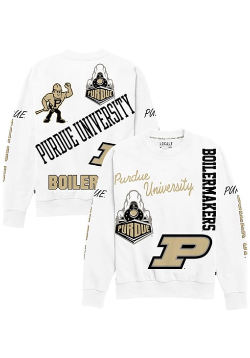 Gear up for the ultimate game day experience with this remarkable Purdue BoilermakersWomens White Kelsey Crew Sweatshirt! Designed with the true fan in mind, this Boilermakers Long Sleeve Sweatshirt features a screen print team name and logos repeated all over garment. Stay warm and comfortable with this Womens Purdue Boilermakers Crew Sweatshirt.