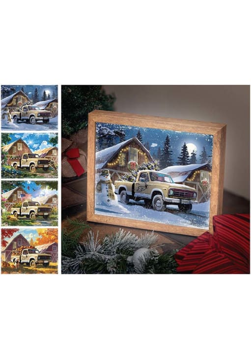 Product Details Product Details 1 - 10" x 8" wood frame box4 art images: Winter, Spring, Summer, Fall3 LED color optionsWood frame- 2” deepSwitch control with 4 buttonsUSA Officially Licensed Purdue Boilermakers team logo Table Lamp is a great way to shed some light in your Boilermakers fan cave. This Table Lamp features a team logo.