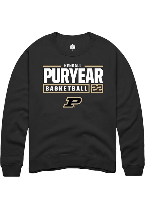 Kendall Puryear Rally Mens Black Purdue Boilermakers NIL Stacked Box Crew Sweatshirt