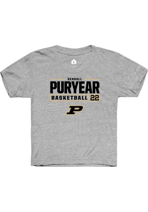 Kendall Puryear Rally Youth Grey Purdue Boilermakers NIL Stacked Box Short Sleeve T-Shirt