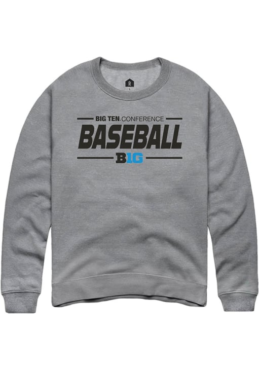 Mens Big Ten Grey Rally Baseball Crew Sweatshirt