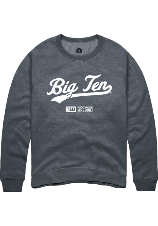 Mens Big Ten Grey Rally Script Crew Sweatshirt