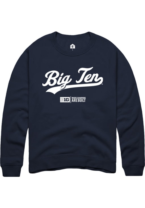 Mens Big Ten Navy Blue Rally Script Design Crew Sweatshirt