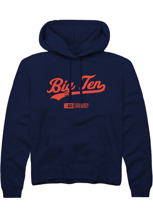 Mens Big Ten Navy Blue Rally Script Wordmark Hooded Sweatshirt