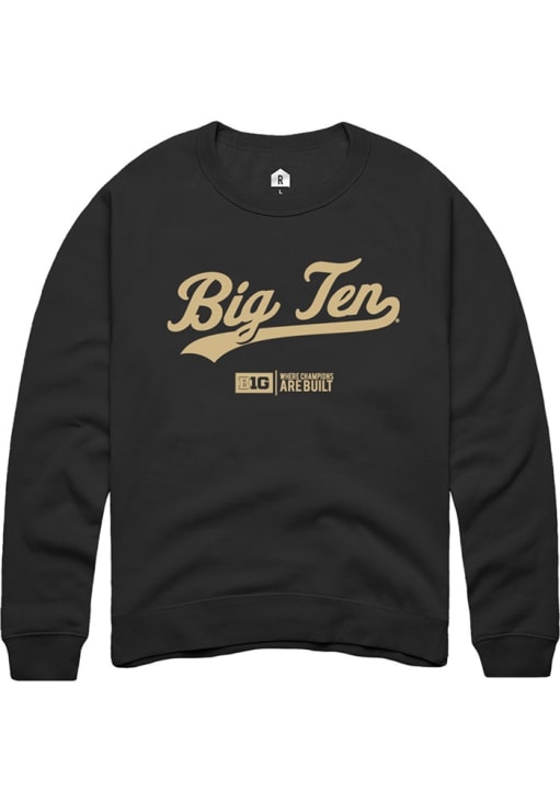 Mens Big Ten Black Rally Script Crew Sweatshirt