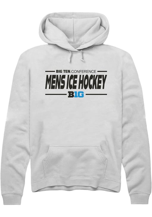 Mens Big Ten White Rally Mens Ice Hockey Hooded Sweatshirt