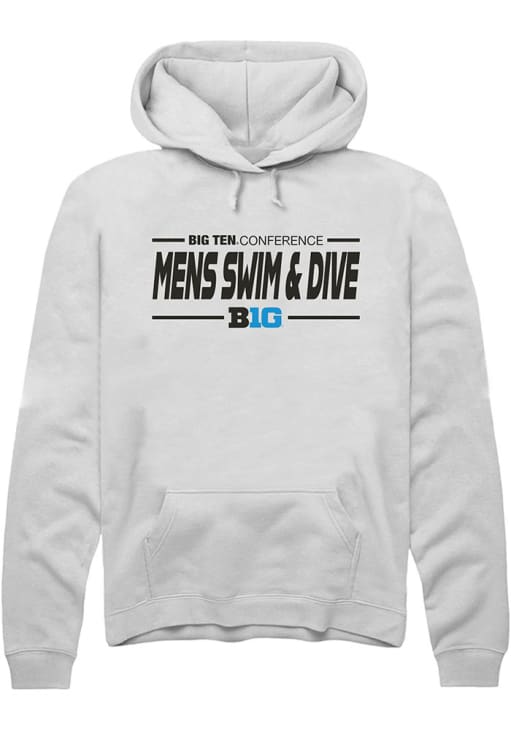 Mens Big Ten White Rally Mens Swimming & Diving Hooded Sweatshirt