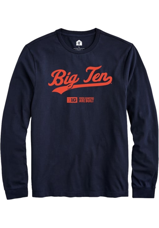 Show your Big Ten spirit in this Big Ten Navy Blue T Shirt! This Big Ten Script Design Long Sleeve T Shirt makes a great layer for cooler nights cheering on the Big Ten. Featuring a team graphic, this Big Ten Long Sleeve Tee is an essential addition for every fan. !
