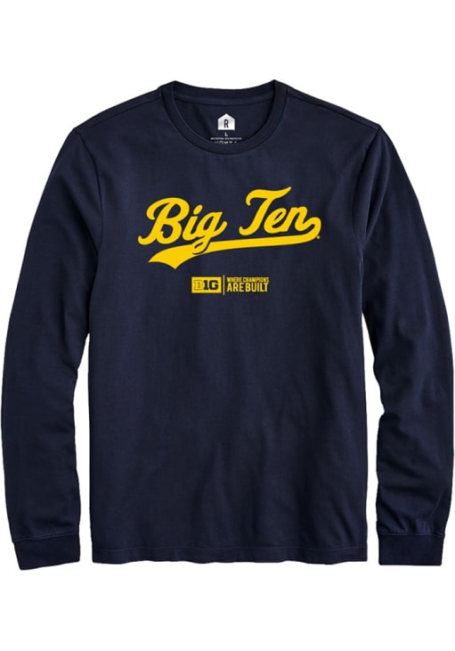 Show your Big Ten spirit in this Big Ten Navy Blue T Shirt! This Big Ten Script Long Sleeve T Shirt makes a great layer for cooler nights cheering on the Big Ten. Featuring a team graphic, this Big Ten Long Sleeve Tee is an essential addition for every fan. !