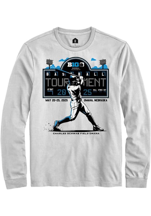 Show your Big Ten spirit in this Big Ten White T Shirt! This Big Ten 2025 Baseball Tournament Long Sleeve T Shirt makes a great layer for cooler nights cheering on the Big Ten. Featuring a team graphic, this Big Ten Long Sleeve Tee is an essential addition for every fan. !