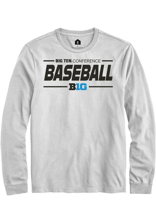 Show your Big Ten spirit in this Big Ten White T Shirt! This Big Ten Baseball Long Sleeve T Shirt makes a great layer for cooler nights cheering on the Big Ten. Featuring a digitally printed graphic, this Big Ten Long Sleeve Tee is an essential addition for every fan. !