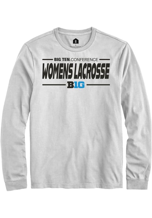 Show your Big Ten spirit in this Big Ten White T Shirt! This Big Ten Womens Lacrosse Long Sleeve T Shirt makes a great layer for cooler nights cheering on the Big Ten. Featuring a digitally printed graphic, this Big Ten Long Sleeve Tee is an essential addition for every fan. !