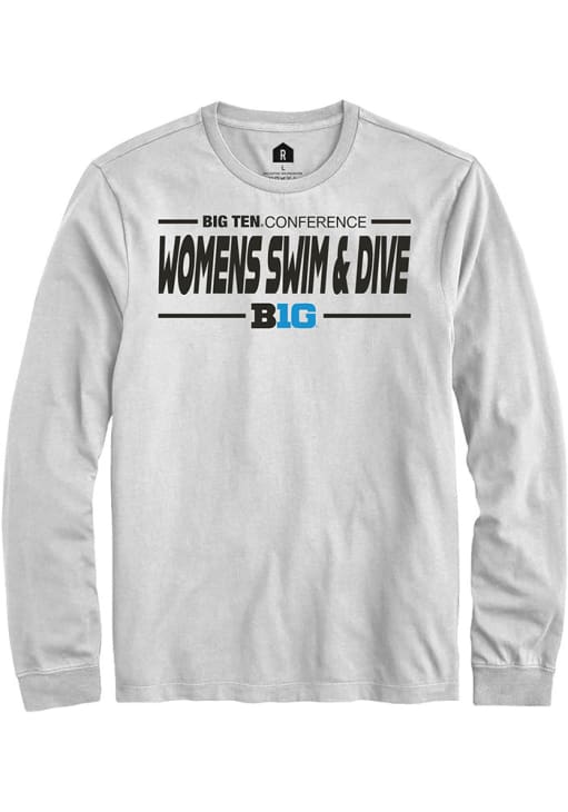 Show your Big Ten spirit in this Big Ten White T Shirt! This Big Ten Womens Swimming & Diving Long Sleeve T Shirt makes a great layer for cooler nights cheering on the Big Ten. Featuring a digitally printed graphic, this Big Ten Long Sleeve Tee is an essential addition for every fan. !