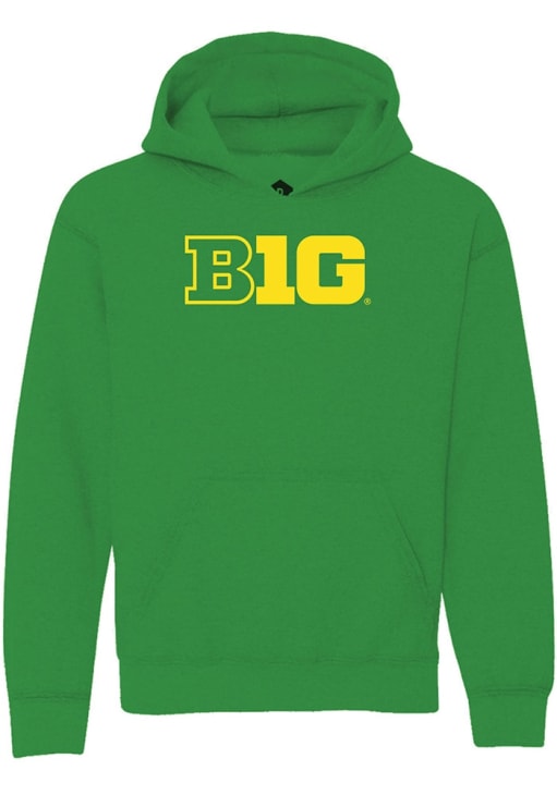 Youth Big Ten Green Rally Primary Logo Long Sleeve Hooded Sweatshirt