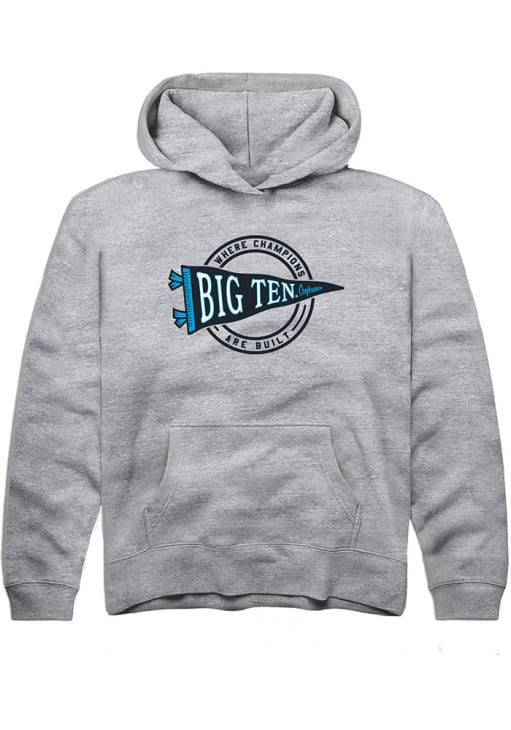 Youth Big Ten Grey Rally Pennant Long Sleeve Hooded Sweatshirt