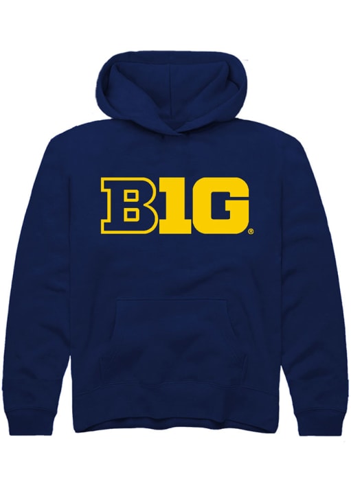 Youth Big Ten Navy Blue Rally Primary Logo Style Long Sleeve Hooded Sweatshirt