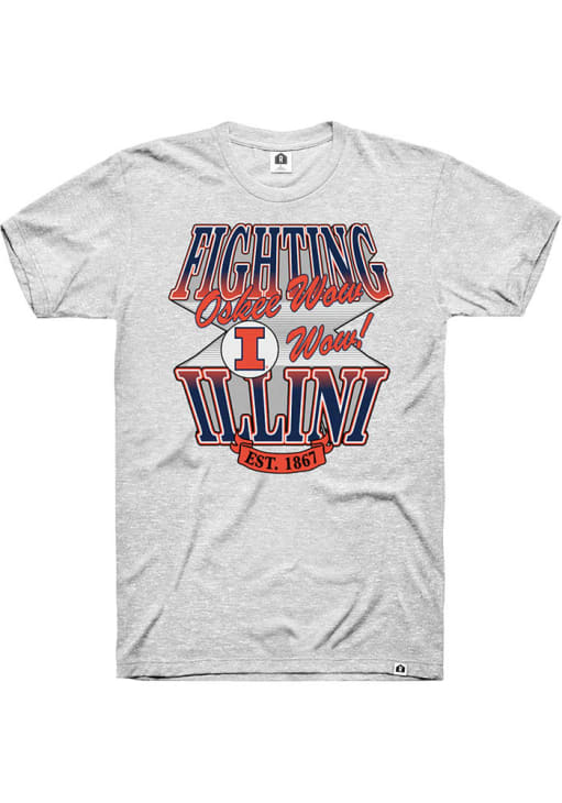 Support your Illinois Fighting Illini in this Ash Short Sleeve Fashion Tee! This Triblend Fashion T Shirt features a screen printed team graphic on front chest. Be ready to yell "Go, Illini, Go" when you wear this Illinois Short Sleeve Fashion T Shirt in your favorite stadium or on the street.