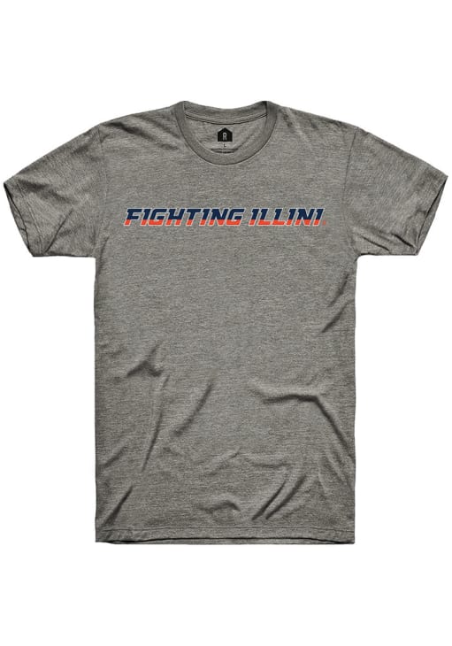 Display your team spirit with this remarkable Illinois Fighting Illini Grey Two Tone Wordmark Short Sleeve T Shirt! The Illinois Short Sleeve Tee showcases a team graphic on front chest that truly sets it apart. Stand out from the crowd and proudly declare your allegiance to the Fighting Illini with this exceptional Grey Illinois T Shirt. Go, Illini, Go!