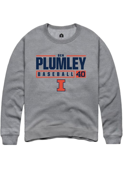 Ben Plumley Rally Mens Graphite Illinois Fighting Illini NIL Stacked Box Crew Sweatshirt