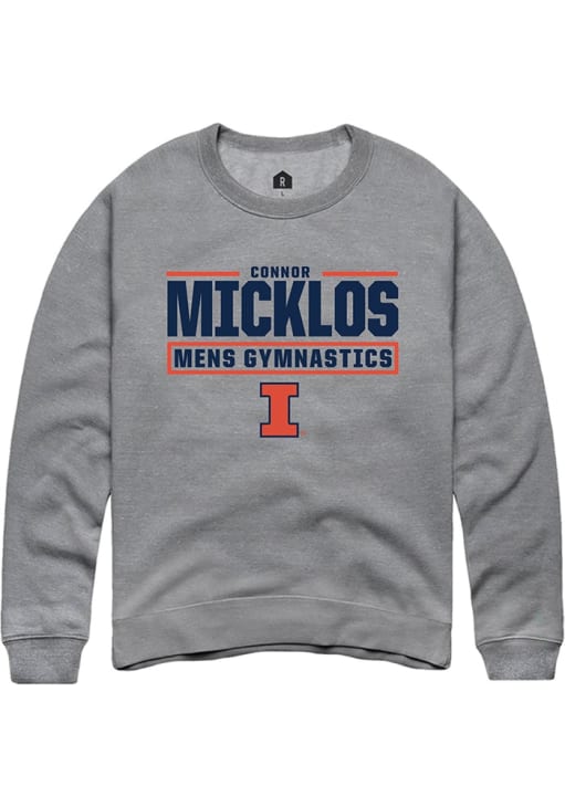 Connor Micklos Rally Mens Graphite Illinois Fighting Illini NIL Stacked Box Crew Sweatshirt