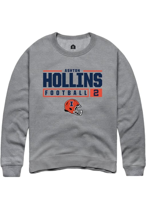 Ashton Hollins Rally Mens Graphite Illinois Fighting Illini NIL Stacked Box Crew Sweatshirt