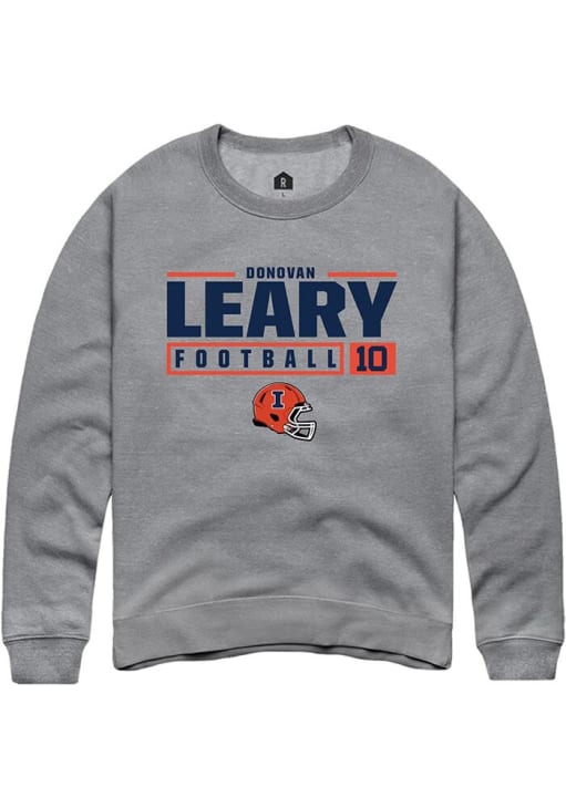 Donovan Leary Rally Mens Graphite Illinois Fighting Illini NIL Stacked Box Crew Sweatshirt