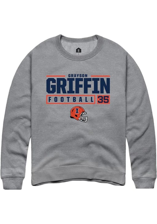 Gear up for the ultimate game day experience with this remarkable Illinois Fighting IlliniMens Graphite NIL Stacked Box Crew Sweatshirt! Designed with the true fan in mind, this Fighting Illini Long Sleeve Crew Sweatshirt features a custom graphic with player's name and number. Stay warm and comfortable with this Mens Illinois Fighting Illini Crew Sweatshirt.