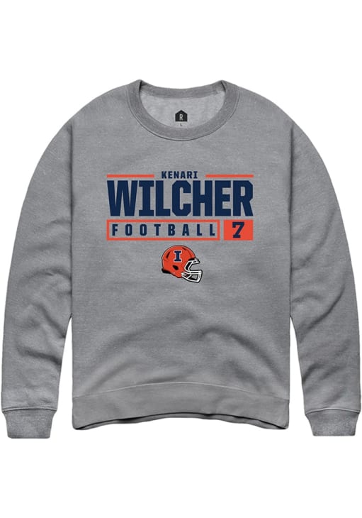 Kenari Wilcher Rally Mens Graphite Illinois Fighting Illini NIL Stacked Box Crew Sweatshirt