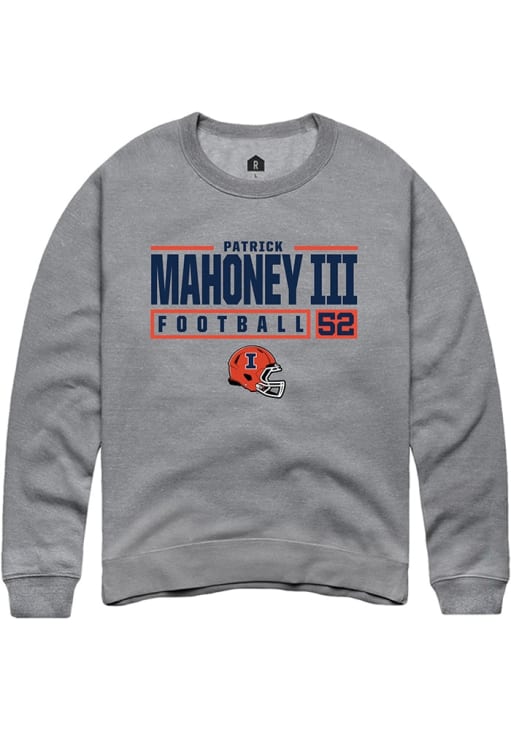 Gear up for the ultimate game day experience with this remarkable Illinois Fighting IlliniMens Graphite NIL Stacked Box Crew Sweatshirt! Designed with the true fan in mind, this Fighting Illini Long Sleeve Crew Sweatshirt features a custom graphic with player's name and number. Stay warm and comfortable with this Mens Illinois Fighting Illini Crew Sweatshirt.