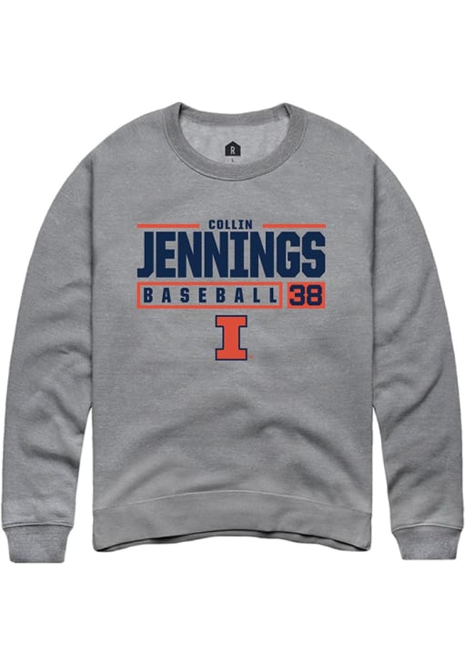 Collin Jennings Rally Mens Graphite Illinois Fighting Illini NIL Stacked Box Crew Sweatshirt