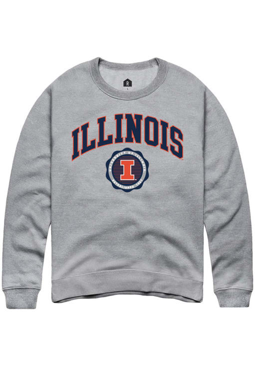 Gear up for the ultimate game day experience with this remarkable Illinois Fighting IlliniMens Grey Arch Seal Crew Sweatshirt! Designed with the true fan in mind, this Fighting Illini Long Sleeve Crew Sweatshirt features a team graphic on front chest. Stay warm and comfortable with this Mens Illinois Fighting Illini Crew Sweatshirt.