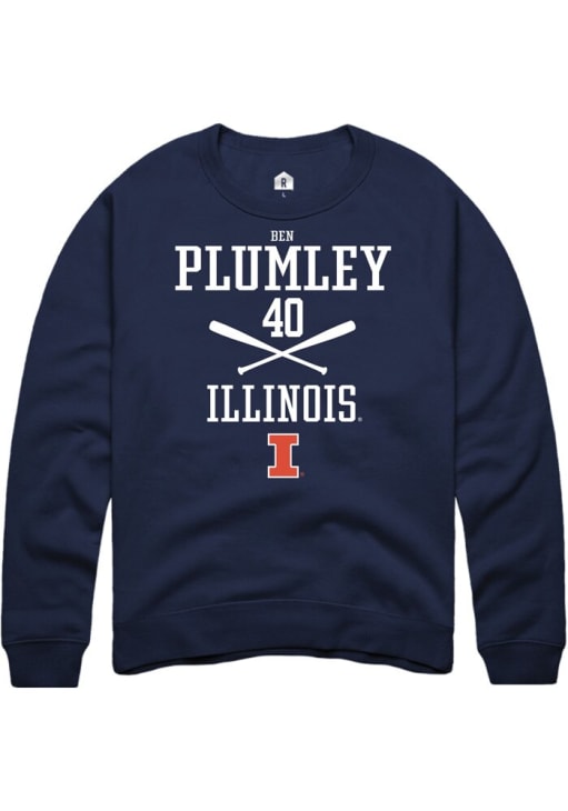 Ben Plumley Rally Mens Navy Blue Illinois Fighting Illini NIL Sport Icon Crew Sweatshirt