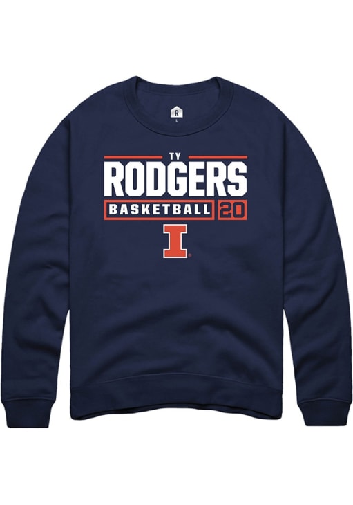 Ty Rodgers Rally Mens Navy Blue Illinois Fighting Illini NIL Stacked Box Crew Sweatshirt