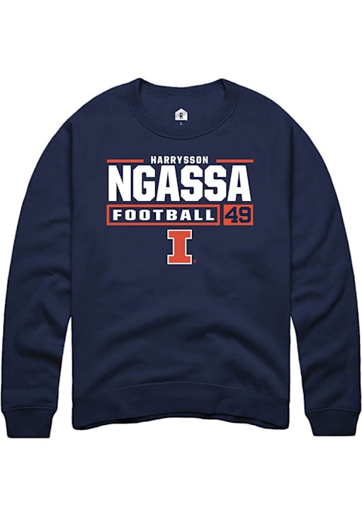 Harrysson Ngassa Rally Mens Navy Blue Illinois Fighting Illini Football NIL Stacked Box Crew Sweat..