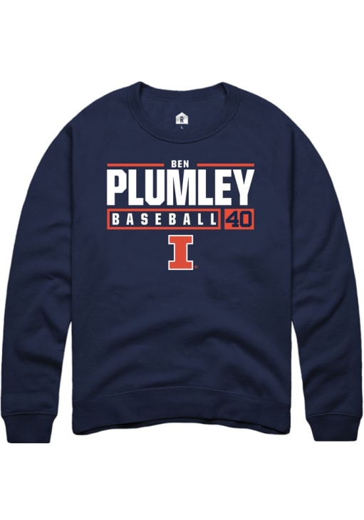 Ben Plumley Rally Mens Navy Blue Illinois Fighting Illini NIL Stacked Box Crew Sweatshirt