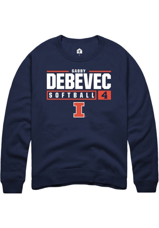 Gabby Debevec Rally Mens Navy Blue Illinois Fighting Illini NIL Stacked Box Crew Sweatshirt