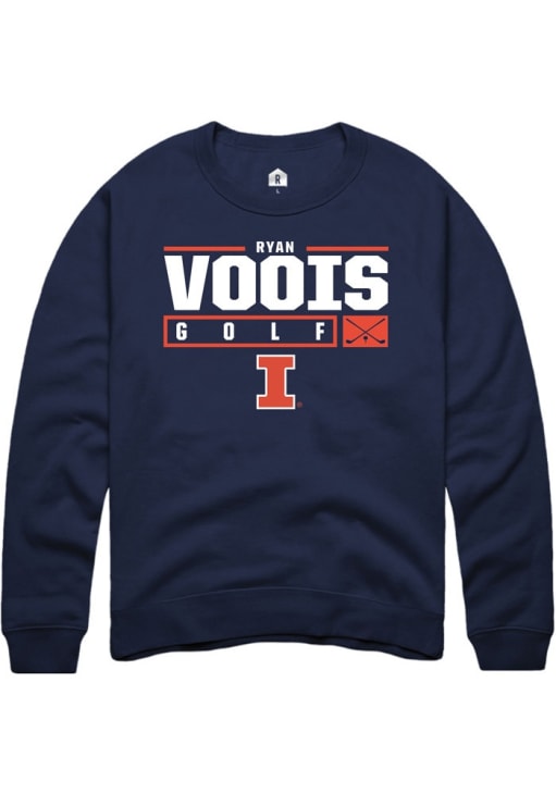 Ryan Voois Rally Mens Navy Blue Illinois Fighting Illini NIL Stacked Box Crew Sweatshirt